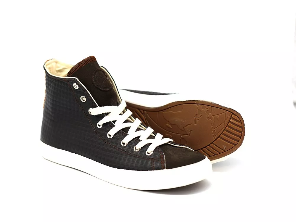Elegantni visoki copati, idealni za hladnejše dni. Zunanji material je sestavljen iz visokokakovostnega usnja z zanimivim reliefom, ki ustvarja edinstven učinek, ki spominja na teksturo lesa. Podplat je izdelan iz visokokakovostne gume, spodnji del pa odraža filozofijo celotne blagovne znamke - del sveta na desni nogi in del na levi nogi spominjata na glavno idejo blagovne znamke Inkkas, in sicer povezovanje sveta. Primerna perujska tkanina na hrbtni strani doda iskrico celotnemu videzu čevljev.