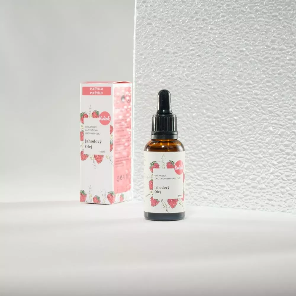 Jagodni olje se pridobiva iz jagodnih semen (ne iz mesa) s hladnim stiskanjem. Ta visokokakovostni nerafinirani olje zaradi nežnega stiskanja ohranja naravno jagodno aromo in nežno zlato barvo. Je odlična izbira za starajočo, zelo suho ali poškodovano ali občutljivo kožo. Spada med tako imenovana suha olja, zato je primeren tudi za mastno kožo. Blaži draženje in rdečico. Ima protivnetne učinke. Pomaga pri odpravljanju pigmentacij.