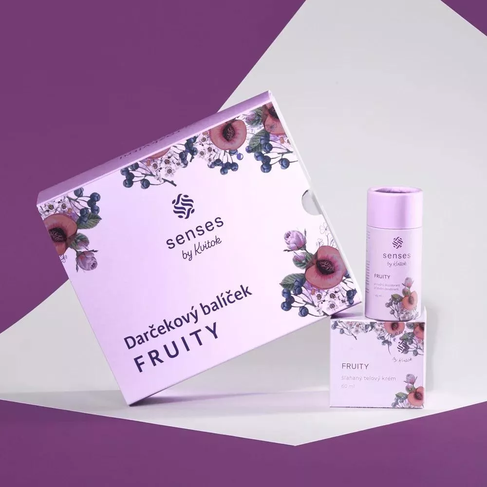 Ta paket ročno izdelane kozmetike iz darov narave z igrivim vonjem Fruity je odlično darilo za žensko vseh starosti, ki se rada razvaja.