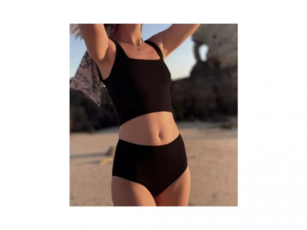 Kroj hlačk z visokim pasom zagotavlja visoko udobje pri nošenju med menstruacijo. Izbirate lahko med velikostmi XS - XL.