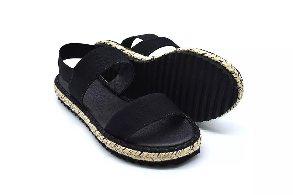 Črni sandali z okrasno obrobo podplata, izdelani iz naravnih materialov. Petni trak je narejen iz gume, zato se čevlji zlahka obujejo in dobro držijo na nogi. Tako kot vsi drugi čevlji Perky so tudi ti sandali izdelani z mislijo na okolje. Z nakupom jih boste osrečili sebe in naravo.