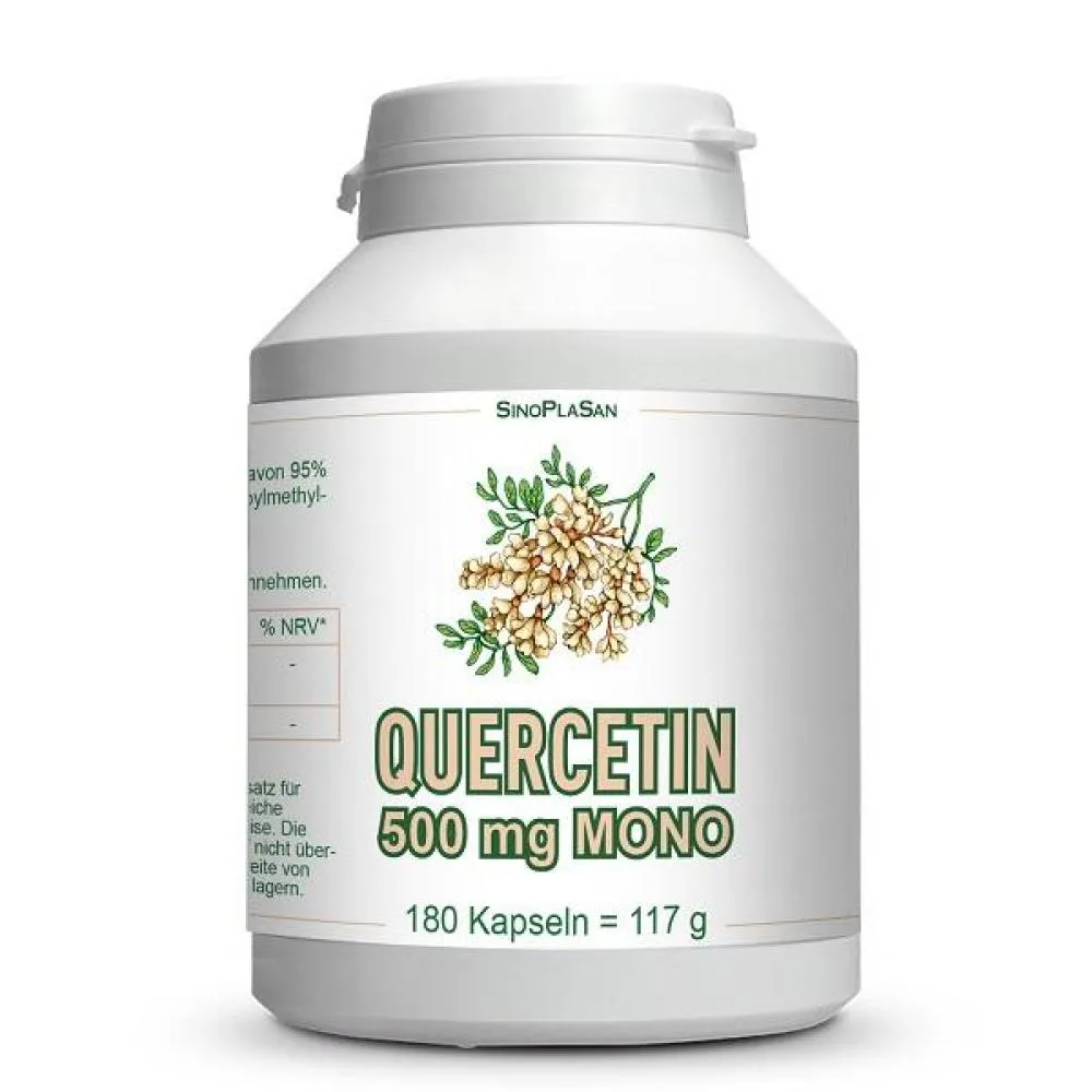 Kvercetin 500 mg MONO podjetja SinoPlaSan je specializirano prehransko dopolnilo, zasnovano za podporo vašega zdravja s kvercetinom, močnim flavonoidom, ki je znan po svojih antioksidativnih in protivnetnih lastnostih. Ta izdelek ponuja učinkovit odmerek 500 mg kvercetina na kapsulo in vsebuje skupno 180 kapsul, kar zagotavlja dolgoročno oskrbo in priročno odmerjanje.