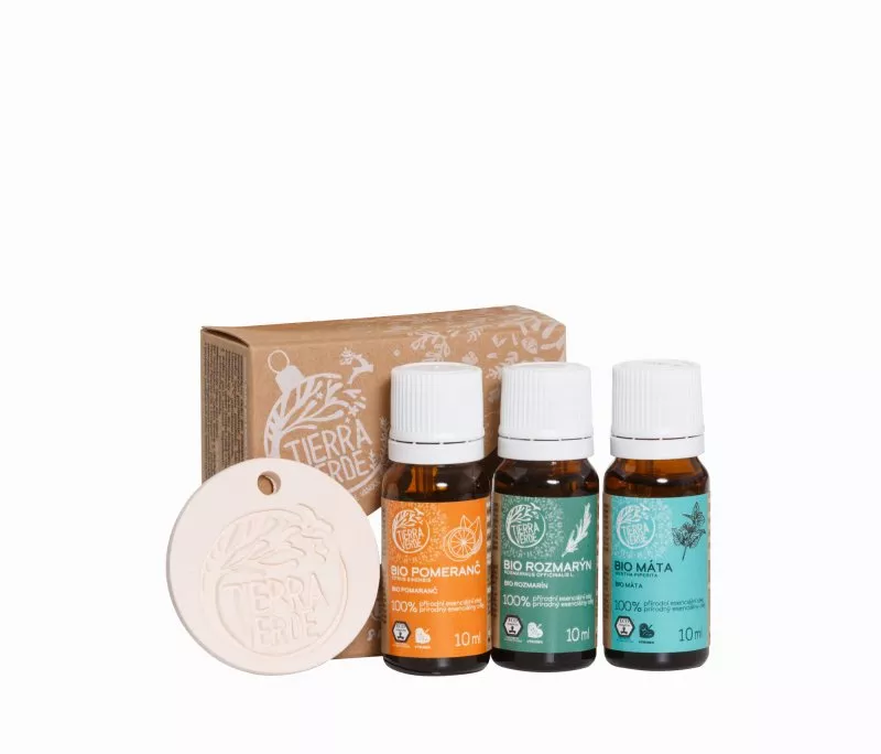 Trije BIO eterična olja s certifikatom Ecogarantie, lepo zapakirana v papirnati škatlici in dopolnjena z neglazirano glineno ploščico. Olja poživijo v predpraznični naglici in prinašajo energijo, kadarkoli je potrebna. Idealen dar za vse ljubitelje čistih naravnih vonjev. Set vsebuje naslednja eterična olja v stekleničkah s kapalko s prostornino 10 ml: