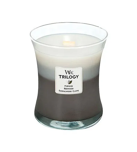 Fireside - naš slavni vonj prinaša harmonijo ambre, vetiverja in mošusa, ki najbolje izražajo vzdušje prijetnega večera ob gorečem kaminu Redwood - sofisticiran vonj, ki združuje bogat vonj rdečega lesa s sandalovino in aromo nežne ambre Sandalwood Clove - dišeča sandalovina v kombinaciji s sladkim klinčkom Trajanje gorenja je 55 - 65 h.
